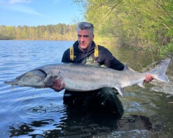Der Fokus an See 4 liegt ganz klar auf dem Störangeln – speziell auf die beeindruckenden Transmontanus-Störe, die sich hier über die Jahre hervorragend entwickelt haben. Diese Art, auch als Weißer Stör bekannt, ist für ihre enorme Kraft und Ausdauer bekannt. Einige der Fische erreichen dabei eine beachtliche Größe von weit über zwei Metern, die man so nicht an jedem Gewässer findet – ein Erlebnis, das man kaum in Worte fassen kann.